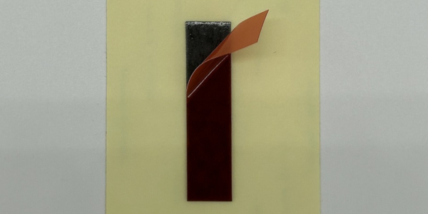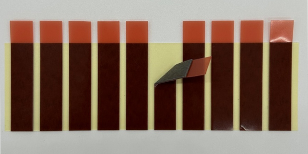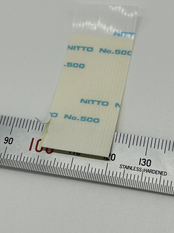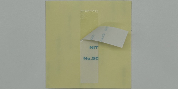 剥ぎ代を持って台紙から剥がし、テープを対象物に貼り付けた後