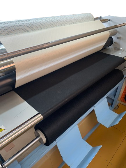 フィルム、不織布等に両面テープを貼り合わす機械です
